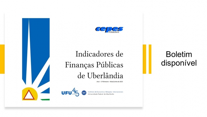 A 1ª edição do boletim “Indicadores de Finanças Públicas de Uberlândia” foi divulgada pelo Centro de Estudos, Pesquisas e Projetos Econômico-sociais (CEPES) em 30/08/2023.
