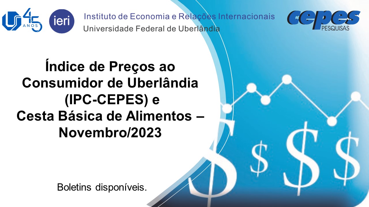 O Índice de Preços ao Consumidor de Uberlândia (IPC-CEPES), em novembro de 2023, apresentou uma variação de 0,51%, acima da taxa registrada em outubro de 2023 (0,38%). No ano de 2023, a variação acumulada do IPC-CEPES foi 3,46%.