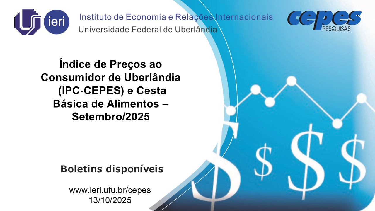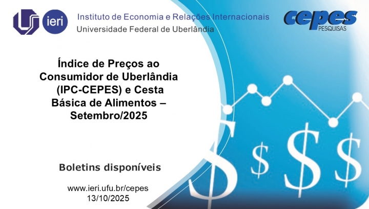 O Índice de Preços ao Consumidor de Uberlândia (IPC-CEPES), em setembro de 2025, apresentou uma variação de 0,54%, superior à taxa de julho (-0,15%). No ano (de janeiro a setembro/2025), a variação do IPC-CEPES acumula alta de 2,65% e, nos últimos doze meses, a variação acumulada ficou em 3,97%.